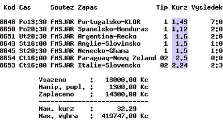 Za 13000Kč výhra 419 747Kč